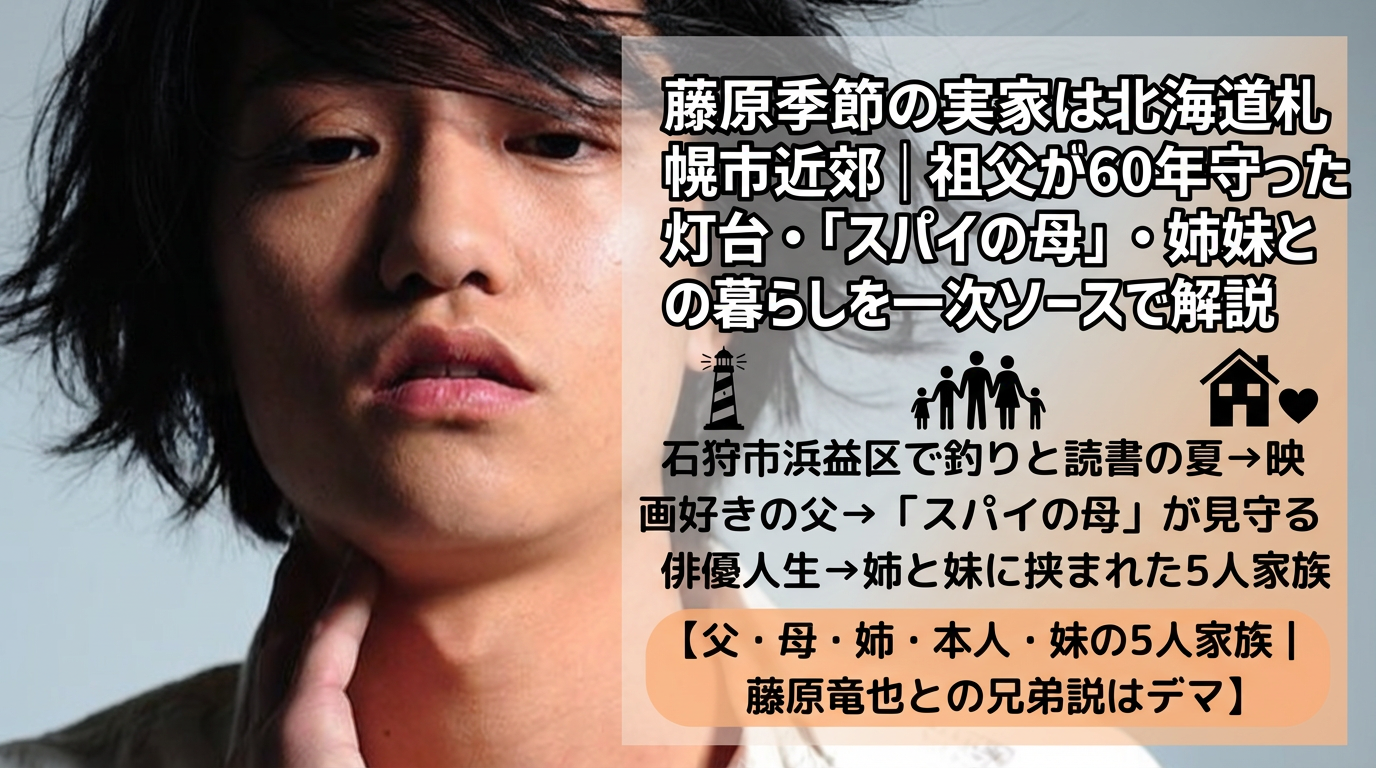 藤原季節さんの実家は、北海道札幌市近郊の落ち着いた地域にあり、祖父が守り続けた石狩市浜益区の灯台との縁も深い家庭です。映画好きの父、「スパイ」として息子を見守る母、甥っ子が生まれた姉──一次ソースを丹念に拾うと、温かい家族の姿が浮かび上がります。